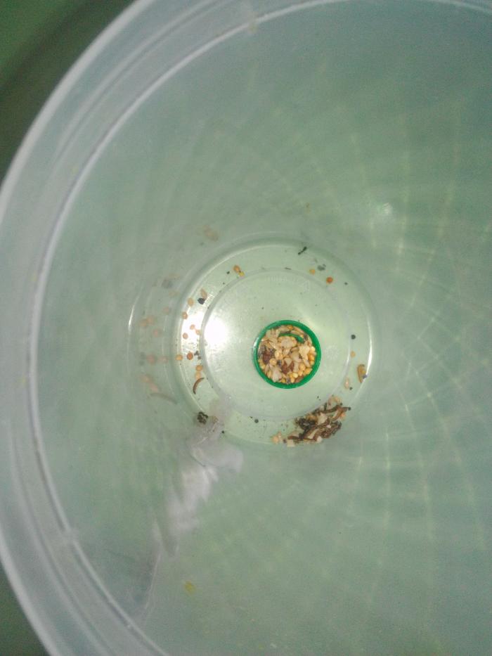 Кормушку - квест) я установил вчера. Сегодня немного семян одуванчика, и некоторые другие находились в гнезде и на арене. Таким образом я немного разнообразил рутину у жнецов.