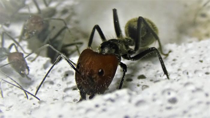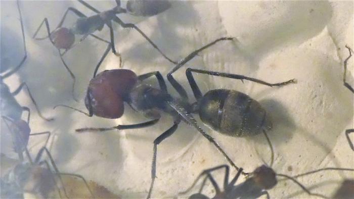 Вообще текст написан давно, тут следует отметить кое какие различия между первыми и вторыми сингулярисами. Сингулярисы от Сергея Б. заметно меньше тех, что отправил мне KVAртет. Среди последних, был рабочий особо крупного размера, с довольно крупной головой, но не солдат, к сожалению фото отсутствует, так как он месяца полтора назад погиб. Буду ждать еще появления подобных особей. На данный момент в семье всего 3 солдата, два от первых и один (очень крупный) от вторых, должен был родиться 4-й месяца два назад, но походу муравьи съели куколку. Тем временем среди личинок появилась одна особо крупная, надеюсь будет солдат. Сейчас появилось 5-7 новых муравьев от нынешней королевы, как и ожидалось они крупнее, точнее их головы несколько больше, а туловища не сильно то и отличаются размером. Ближайшую неделю жду появления еще 5 рабочих и окукливания подросших личинок. Также есть маленькие личинки и некоторое количество яиц (~20 штук).