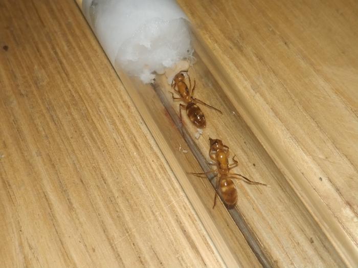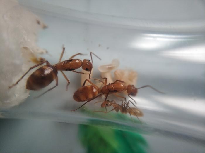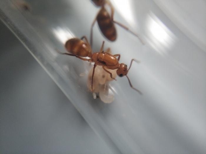 Очень интересный кампонотус. Похоже этот вид и был у меня, как Кампонотус из Доминиканы http://www.antclub.org/node/7491 Хотя, по фотографиям судить сложно, невозможно сравнить даже реальные размеры.Посмотрим после появления рабочих. Переправить из Ю.Америки можно и посадив в пробирку несколько маток, но все же разделить их по одной.