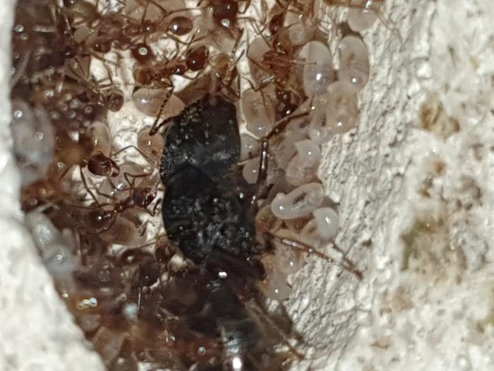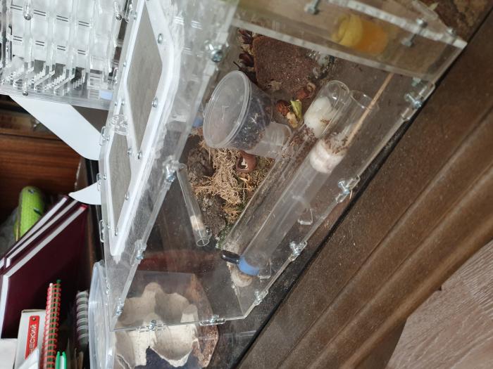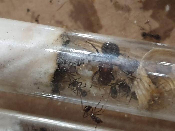 Myrmicaria brunnea 1х50-100 примерно. Можно с формиком можно без Формик кристалл 3.0 Они почему то так и не решились в него вселиться живут на арене в 2 пробирках