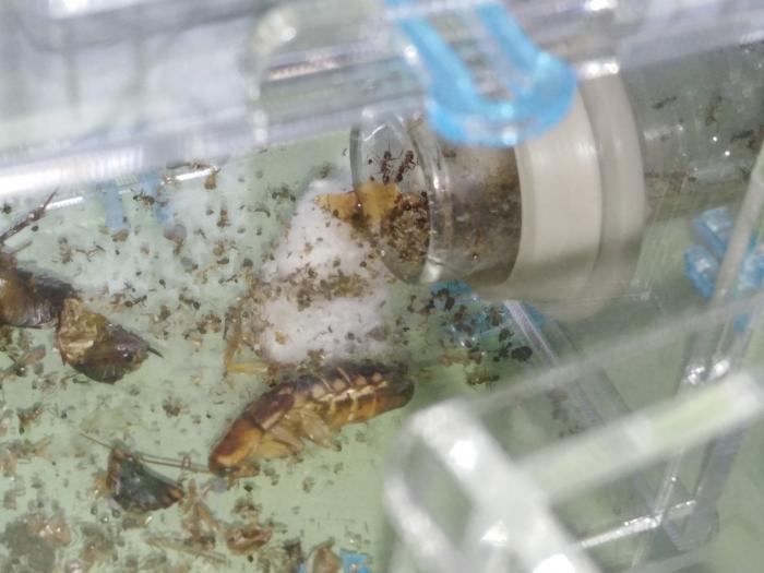 1) Campobotus nicobarensis. Как мы знаем, большинство кампонотусов - заядлые сладкоежки. Желе им очень понравилось и они съели всю порцию, получив добавку.