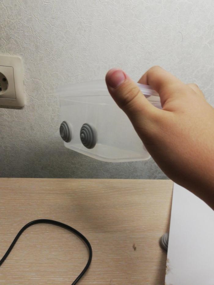 2. Паяльником в одной из сторон крышки контейнера вырезал отверстие нужного диаметра.
