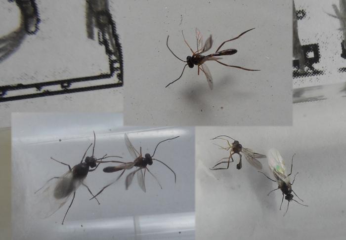 Из одного из коконов взятых из природного муравейника Лазиуса вывелась какая то тварюшка. По виду похожа на муравья с крыльями. Ведет себя как муравей, только по потолку не может ходить падает. Муравьи, включая матку, воспринимают её за свою, кормят и облизывают. Судя по внешности типичная оса наездник. Заражения колонии от одиночной особи, если это конечно паразит, не сильно опасаюсь, если она одна , то точно не оплодотворенная. Выпускать на свободу тоже не собираюсь. Может кто сталкивался с таким