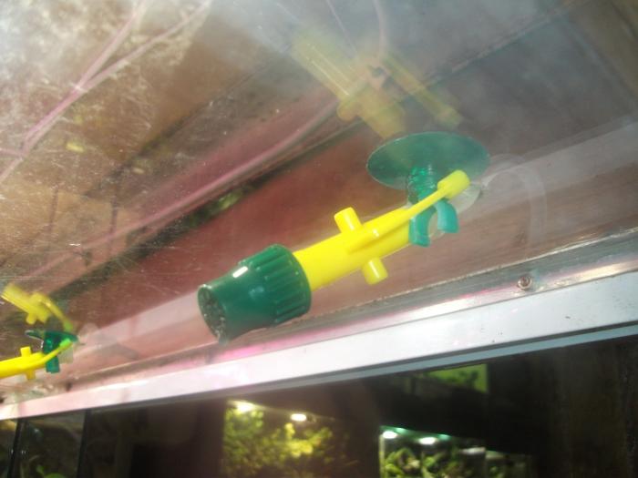Гонять грязную воду аквариумной помпой, занятие безнадежное, сразу забьется и остановится. Так что увлажнение либо ручным опрыскиванием, либо капельное орошение. У китайцев на али есть системы капельного орошения с часовым управлением, рассчитанные на полив нескольких горшков или отдельных растений прямо под корень..
