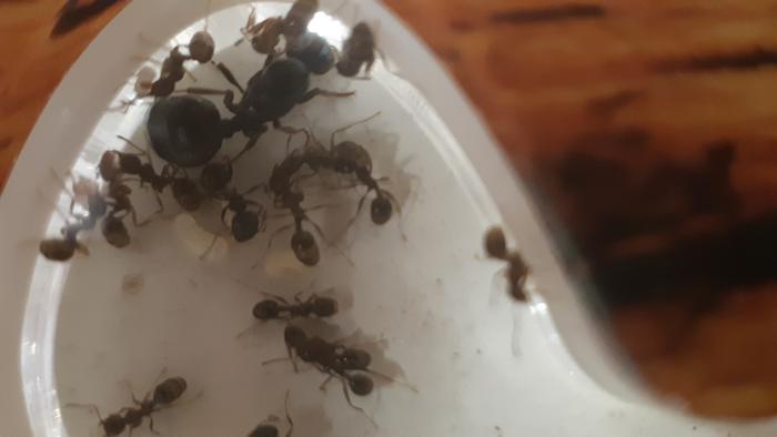 Обе колонии - жнецы. Развиваются нормально. Есть расплод и новые яйца. Правда, рабочая колония устроила в одной из камер помойку, но я устроил им на арене имитацию мусорки - надеюсь вынесут туда мусор.