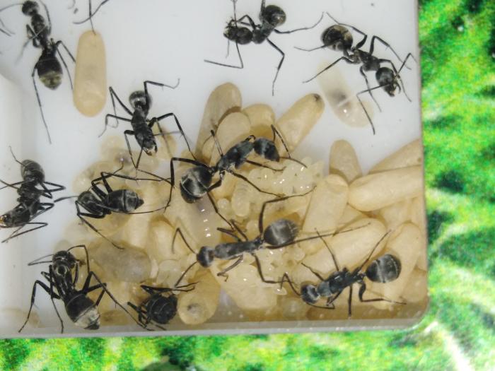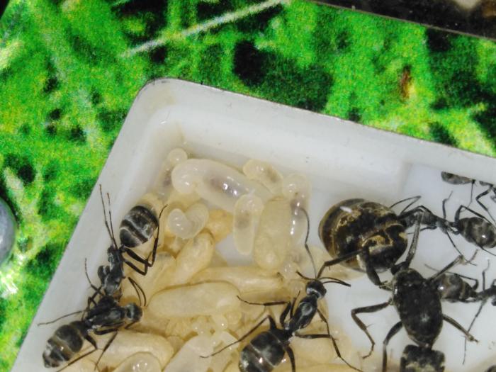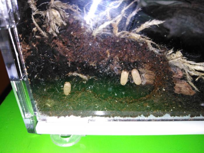 Стоит сказать, что несмотря на неплохую кучку расплода, крупных коконов пока нет. Но я муравьев и не тороплю.