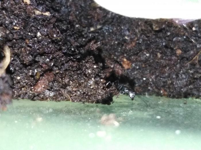 Вот и первый солдат Camponotus aurieventris! Немного крупнее и головастей ников. Очень стеснительный, пока не смог лучше сфотать.