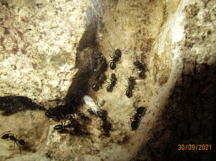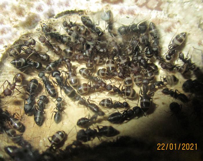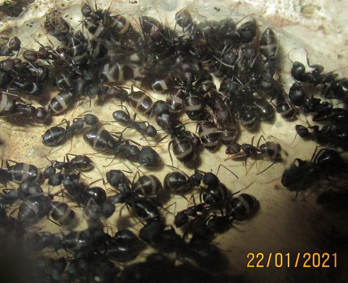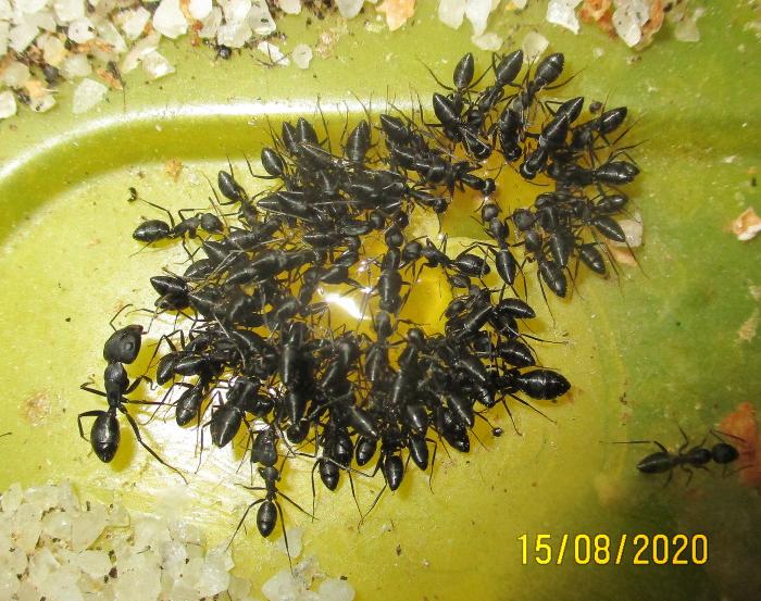 С детских лет интересовался муравьями. Мог часами сидеть у муравьиной дороги, наблюдая за их перемещениями,перечитал все вышедшие на то время книги про муравьев. Далее, стал содержать некоторые местные виды, но об тропических муравьях мог только мечтать. В компьютерные времена стало все проще, появились хорошие друзья по увлечению и тропические виды муравьев, привезенные ими из дальних поездок. Вот и эти черные, матовые,красивые муравьи приехали ко мне издалека, с острова Тинкан, что в Нигерии. А подарил мне их Александр ( Seafrost), за что ему огромное спасибо. Спасибо также всем друзьям, которые участвовали в их транспортировке. Не буду здесь описывать сложный маршрут, который им пришлось преодолеть, но все сложилось удачно. Муравьи приехали в Рыбинск в составе матки, 10-15 мелких рабочих и кучки расплода. Вначале было мнение, что это мономорфный вид, но вскоре в семье появилось несколько солдат и это добавило радости.