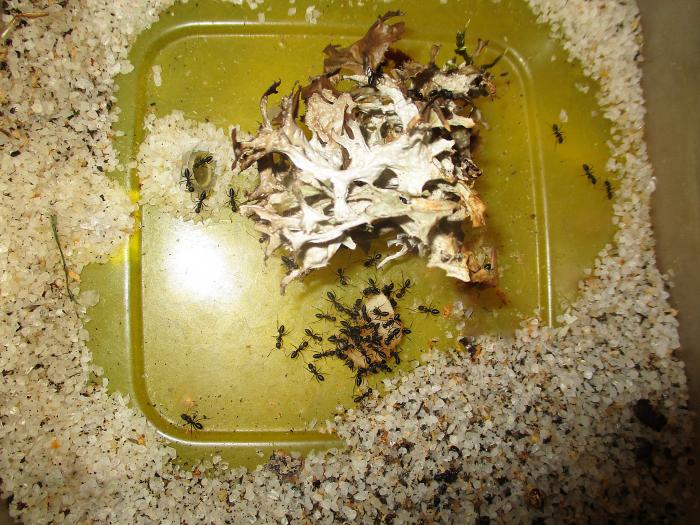 Как оказалось, муравьи, трудолюбивые копатели (это было также отмечено на одном из немецких сайтов) в скором времени очистили от песка все камеры, хоть, казалось бы, в этом и небыло пока необходимости. Еще одним достоинством этих муравьев стало безразличие к побегам, не было даже попыток залезать на стенки арены. Козырек арены первоначально был смазан вазелиновым маслом и с такими жильцами в дальнейшем смазка не обновлялась.