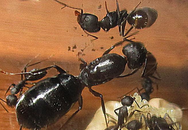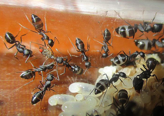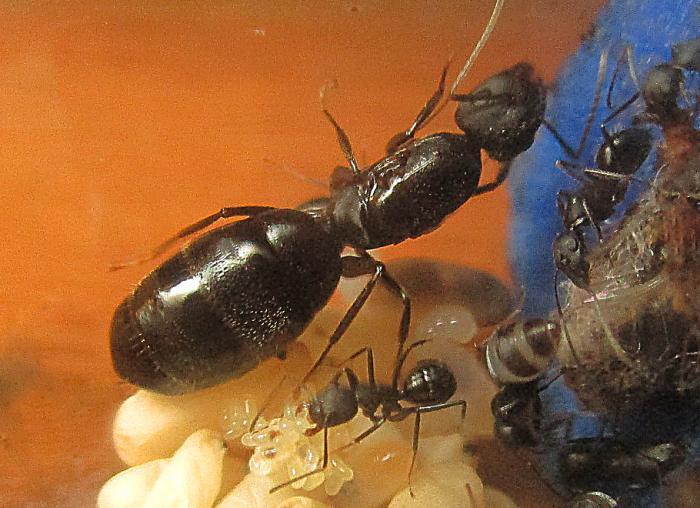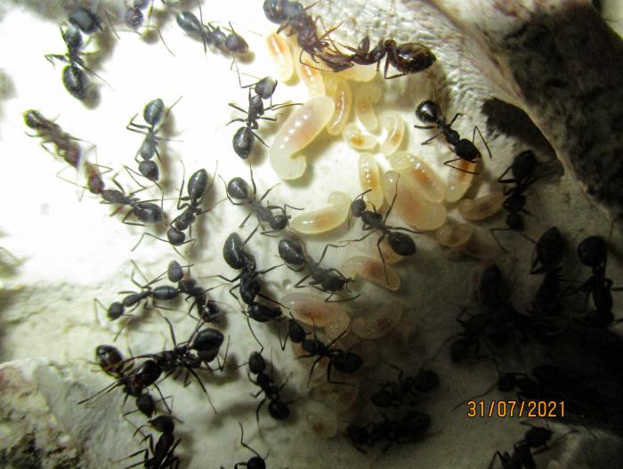 Прошло уже полгода, как семья лишилась матки, но муравьи оказались долгожителями. На первый взгляд, что они и не убыли количественно, а в камерах появилось много разновозрастных личинок. Это кто-то из рабочих особей стал откладывать яйца. Так семья делает последнюю помощь в существовании вида в природе, выращивает самцов, которые будут участвовать в спаривании с самками других муравейников.