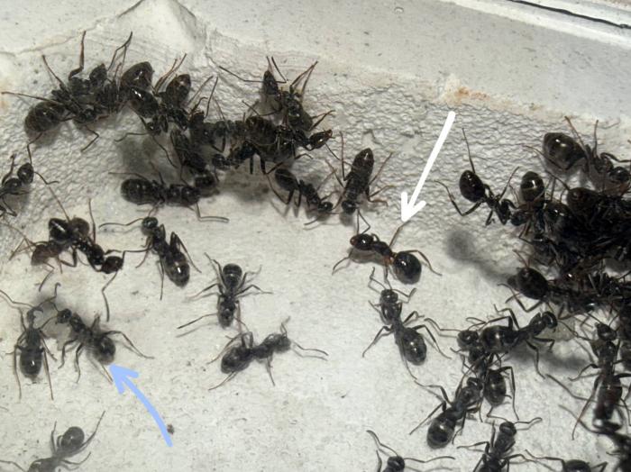 На самом деле да, удивляет, так как по плодовитости она не уступает пратенсису или трукорум, хотя у них только брюшки +- в размер самки копт. Но это создает так же некие проблемы, я уже несколько раз успел похоронить семью, потому что все никак не мог увидеть самку, которую очень сложно заметить на фоне сервиков. Возможно когда появиться больше родных рабочих, станет легче