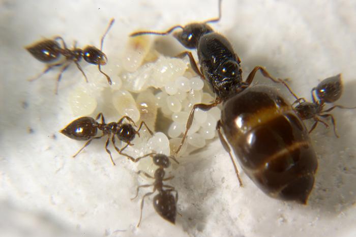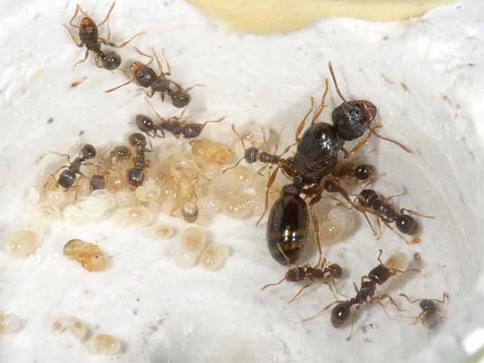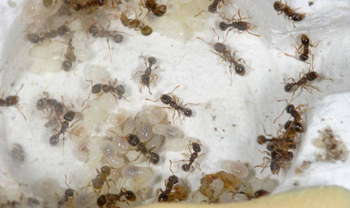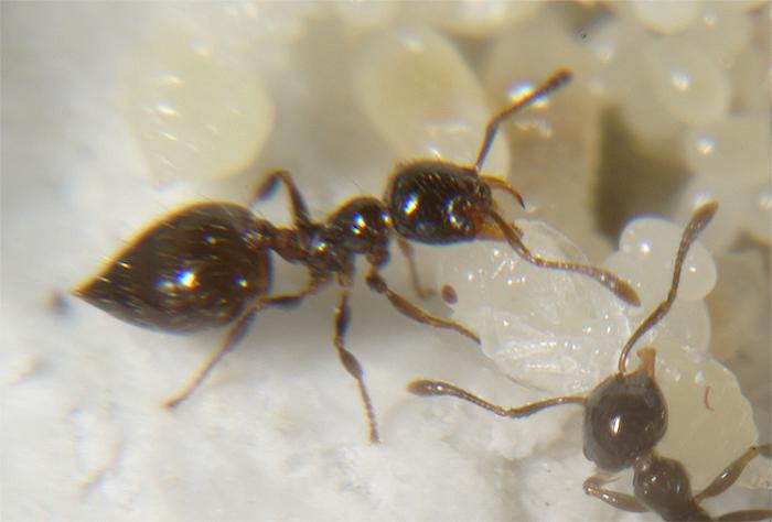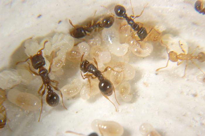 Тетрики -жуткие звери. За пару дней в труху перемалывают большого таракана. Размножаются стремительно. За 4 месяца семья от одинокой самки выросла до 100 голов. Самка откладывает кучи яиц и путь до взрослого муравья у них короче. Быстро зреют. Для сравнения - крематогастеров стартовавших одновременно с тетриками ещё только 12 голов. Все щелки промазываю пластилином. Всё равно, заразы, вылезают. Сегодня одного рабочего придавил на полке. Спутал с фараончиком. А нефиг из формикария было вылезать! Одно слово - ЗВЕРИ!