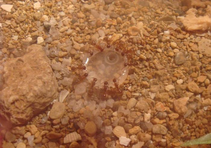 Сейчас вывел из диапузы маленькую семейку предположительно вагуса. Личинки довольно быстро стали расти. Сироп пьют отменно, воду тоже неплохо. Кидал кусочки сверчка - никакой реакции, сверчок портился. Сегодня кинул сверчиную лапку просто ради проверки. Они ее утащили, разгрызли и выели. Даже матка участвовала. Надо будет попозже кинуть еще кусочек. Ситуация понятна: нужно кормить растущих личинок, но такие аппетиты в мое практике сожержания кампонотуса скорее исключение нежели правило.