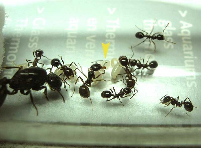 Прибыли они ко мне поездом, 8 января в количестве 12 "человек". Матка, 11 муравьев, и расплод на разных стадиях. Через несколько дней появилась первая куколка (у меня первая), сегодня она уже желтенькая, надеюсь скоро будет пополнение.
