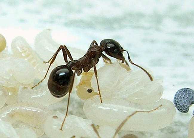 Колония denticulatus-ов, по-моему, развивается неплохо, их уже «человек» 35, расплод на разных стадиях, появился первый крупный рабочий.