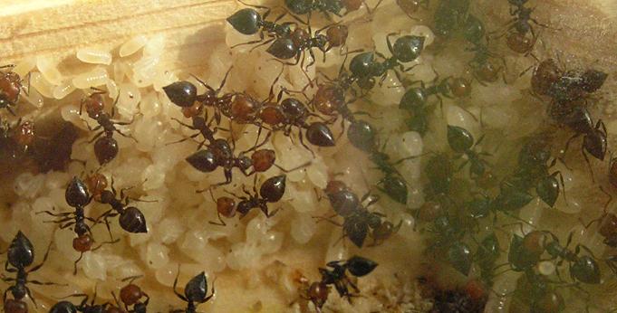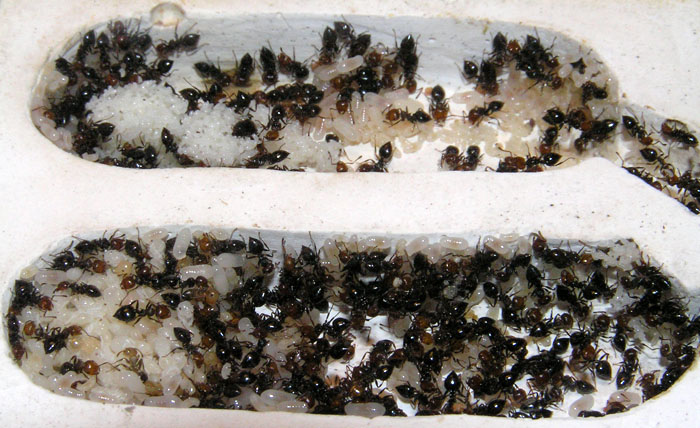 В общих словах никак ) Оказывается крематогастер тоже может впадать во что-то типа диапаузы. Вот всю зиму они сидели, ели (что дурные) и никаким боком никуда не развивались. Поэтому я пока про них ничего не пишу. Надеюсь, чтов скором времени они немного разгонятся. Прошлой зимой тоже такая пауза была, но я думал, что это связано с условиями, а не с временем года.