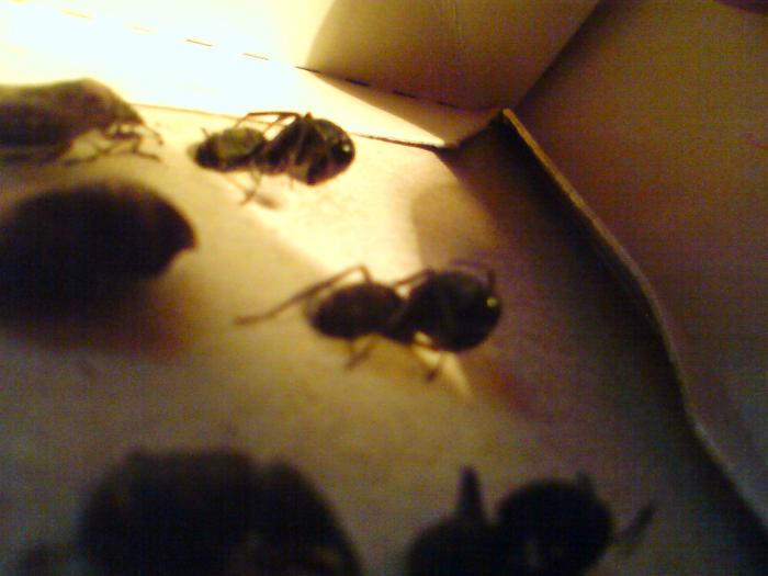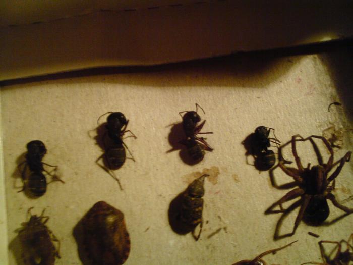 В Омске поймал, где-то в 2002-2003 г., точно не вспомню. Если кто-то из любителей муравьёв есть в Омске, может, знаете, санаторий колос, именно там я и наловил насекомых, которые есть в моей коллекции. Кстати там я и поймал 4-х муравьёв, я пока не сильно разбираюсь в муравьях, поэтому не могу определить их вид. Просьба помогите с определением, размер муравья 8-9 мм.