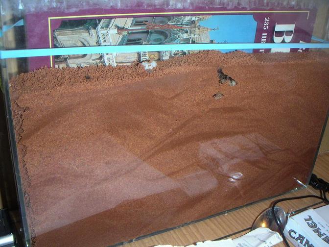 Я когда ехал, а ехал я долго 6 дней... банка была послностью в темноте...а до этого я ее побокам до уровня земли только обматывал тканью. И на поверхности ложил им небольшую баночку из под Лаферона... размером как обычная камера инкубатор в мурашнике. Вобшем туда я воду заливал... но потом все вылилось и они успешно переташили туда две матки и все пожитки. Таким образом приехав домой мне осталось лишь выташить пинцетом пробирку и еще выловить двоих. В пробирку они убежали скорее из-за того что при переезде частично осыпался песок. В результати две жертвы.