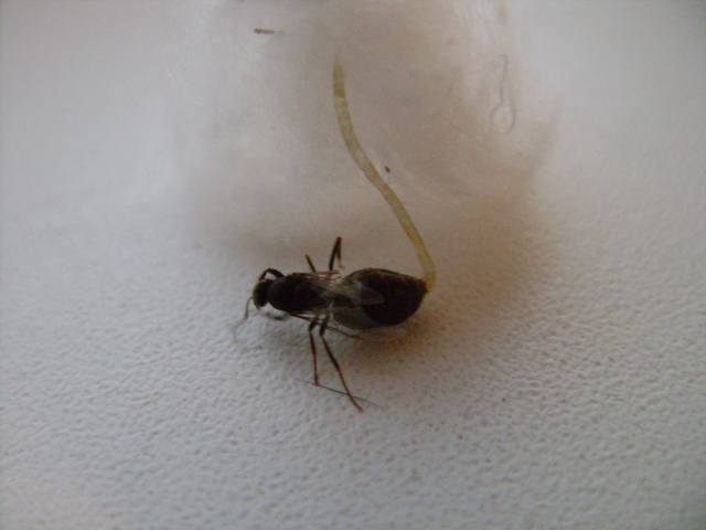 Прива!я ща штук 30 маток словил нигера и вот : у одной черезмерно раздутое брюшко , у нее одно крыло , и из ж*опы торчит червячек 2 см.Што это паразит или г*вно?