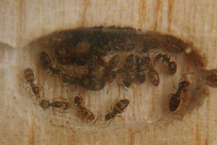 где-то неделю назад забрала из упавшего ореха кусочек колонии, подцепила сухим листом что получилось, получилось как минимум 4 матки и рабочие.