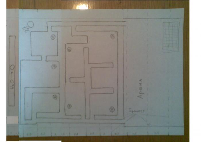 - вентиляцию арены прорезал с торца, немного ниже уровня пола камер в надежде, что это повлечет за собой хоть какую-то циркуляцию воздуха.