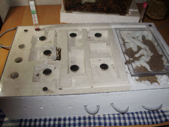 Извините. где вы видели у муравьев прямоугольные камеры и ходы-коридолы прямоугольного сечения с поворотами на 90 градусов. Конечно им все равно, но думаю интереснее наблюдать за жизнью муравьев в более естественной обстановке. Посмотрите на формикарии Rafа.