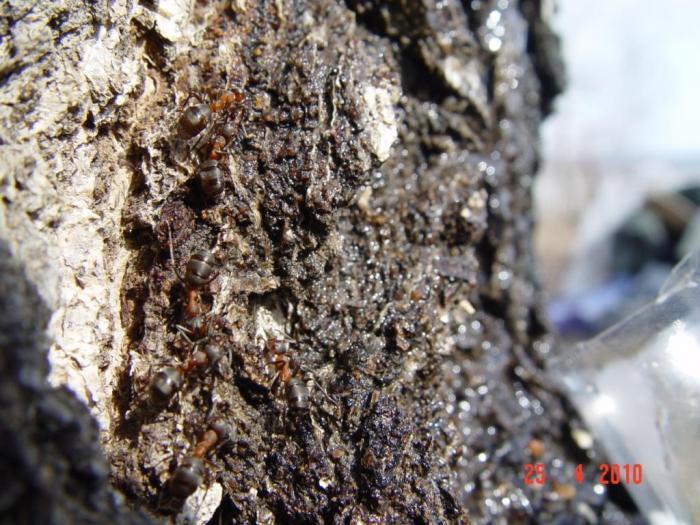 Нашел место, все осмотрел. Вроде нету их. Поставил бутылку к дереву. Через 10 минут набежали неизвестно откуда.... четко у них разведка работает... Сок на вкус немного сладкий. Не сахарный сироп, конечно, но, вероятно, ранней весной после зимнего пробуждения - неплохая поддержка природы...