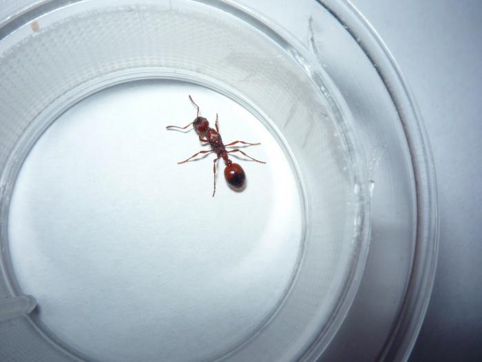 Её бы в пробирку, да обеспечить заботой и любовью. Хочется посмотреть, кто выведется из яиц. Если сантиметровые агрессивные мирмики - было бы просто здорово. Кстати, наверно эта матка может очень здорово укусить/ужалить
