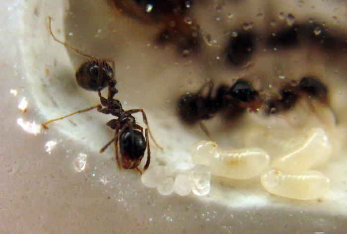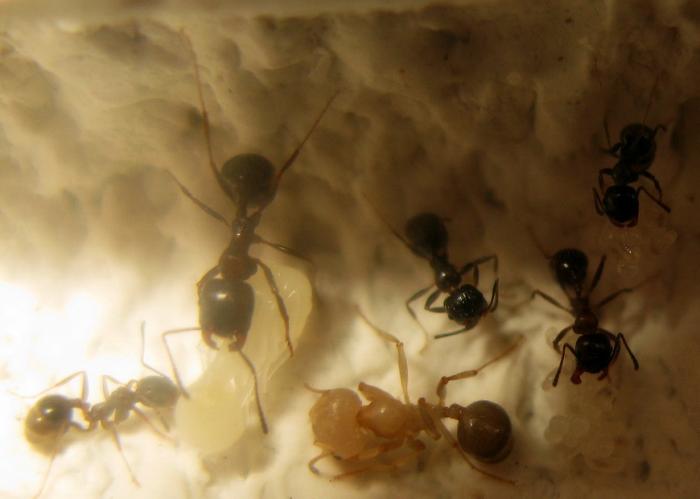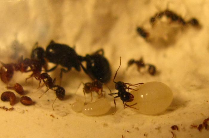 Расплод на различных стадиях - от яйца до "мегаличинки" Назначение которой до сих пор толком никто не может объяснить. Уж очень я сомневаюсь, что молодая неокрепшая колония будет тратить ресурсы на выращивание кормовой или маточной куколки