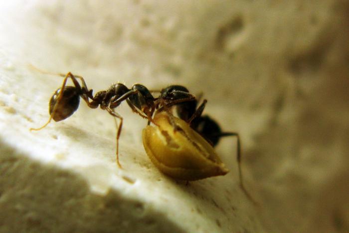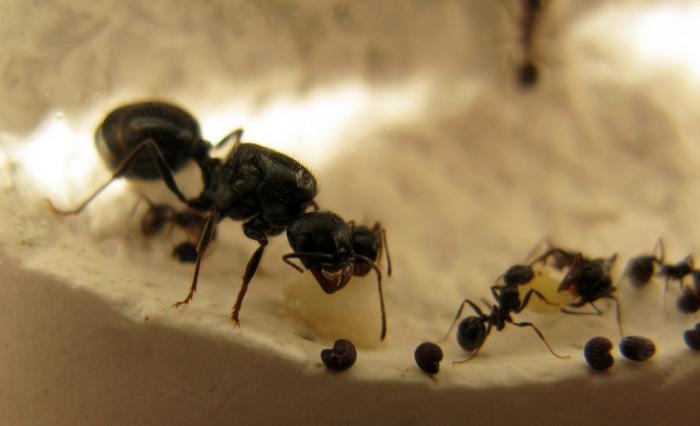 Большая личинка скорее всего будет солдатом. У мессоров очень развит полиморфизм и рабочие могут быть от 4 до 10 мм. Солдаты с их огромными жвалами занимаются дроблением крупных семян на небольшие части, которыми уже занимаются более мелкие собратья.