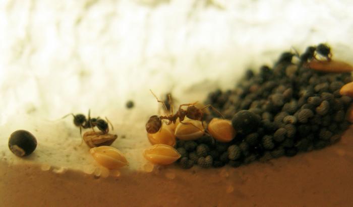 Формик - красивый. Поздравляю с переселением. Если будешь греть шнуром - не кидай еще семян на арену, т.к. проростут. У меня все проросшие сложили в отдельную камеру - там разрослось. Но для мессоров это не страшно. Мои взяли и тупо "постригли" стебельки + вынесли остальные порченные семена. Теперь ничего там не растет.