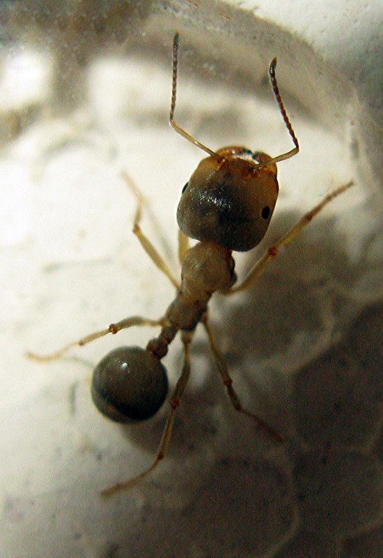 Имаго получился чуть меньше матки, но за счёт того что крылья увеличивают размер на 0,5-0,7 мм, животинка получилась действительно огромная и я даже переживаю за её свободу передвижения внутри формика.