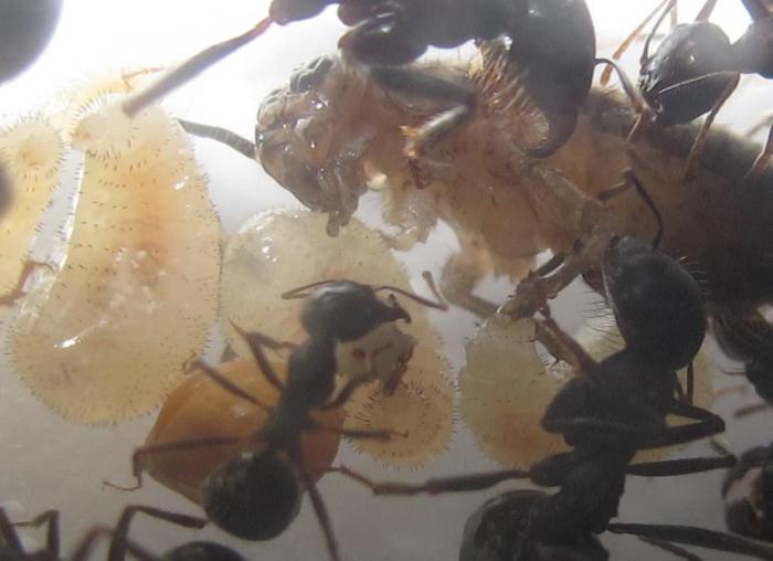 Неродных куколок не осталось, их всех съели, а родные не подросли. Отправил кампонотусов на зимовку с сангвиниями. Пока недельку покукуют на балконе, адаптируются к холоду. Потом -- на нижнюю полку холодильника. Отправляю месяца на три.