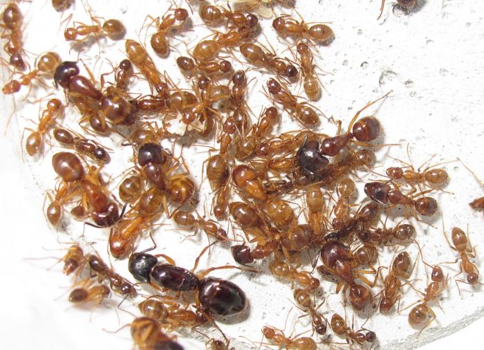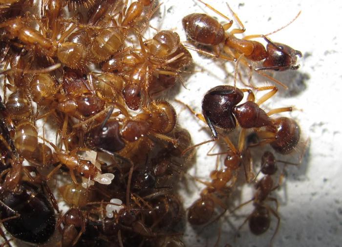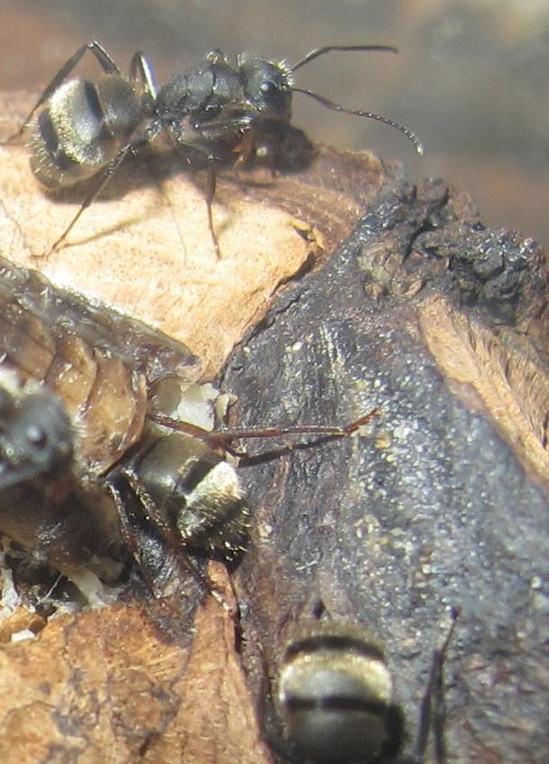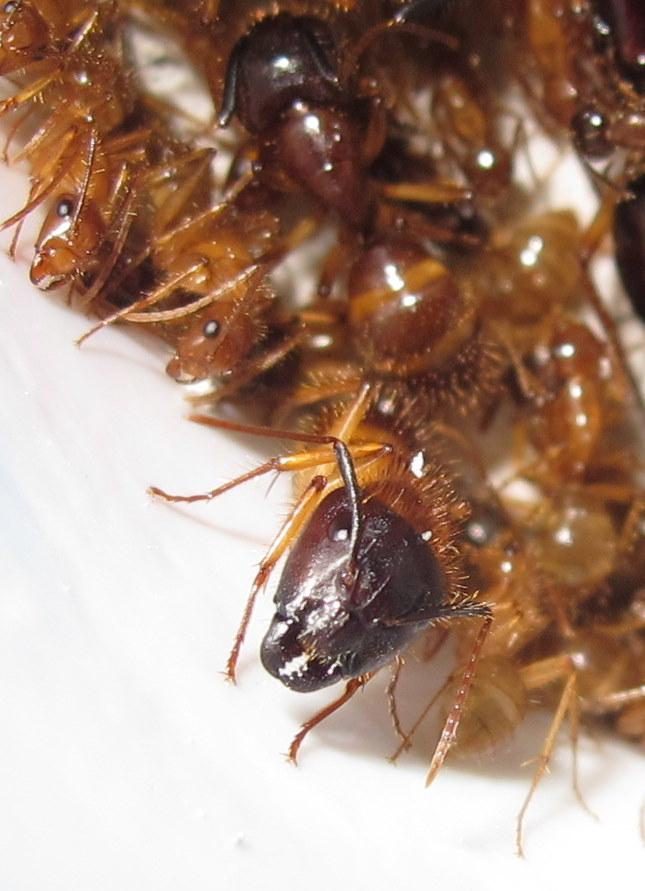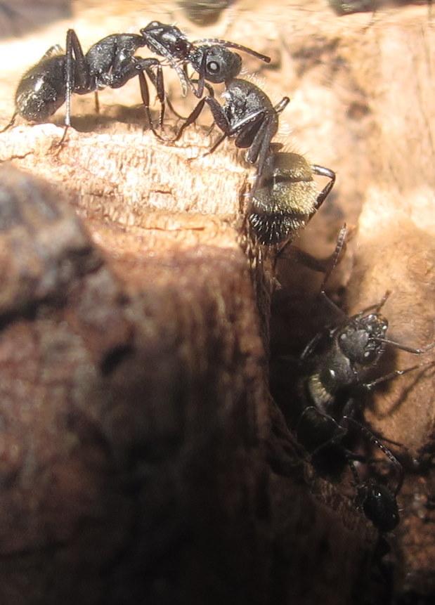 Тут по просьбам выкладываю несколько фотографий. Сначала мадагаскарские кампонотусы, возможно C. hova. Ммм, красавцы. Скоро они найдут своих владельцев. Потом немного Camponotus (myrmobrachys) sp.. Они уже обжились на арене, в деревянном пеньке, который на нее поставил, в углублении, вероятно, стали вытачивать ходы... Во всяком случае вокруг валяются опилки. И, до кучи, Messor arenarius ratus. Обратите внимание, на одной из фотографий, к чему приложилась личинка, и по этому поводу хочу услышать мнение людей, активно юзавших этих мессорюг. Не все фотографии хорошо получились -- аппаратура новая, неосвоенная, и муравьев на арене фотографировать немного проблематично, не приспособился.