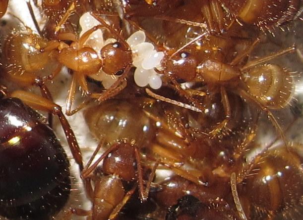 Сейчас активны, вроде поели меда, от сверчка отказались (одному рабочему вообще сверчок не понравился, и муравей все сторожил брюшко несчастного, переодически кусая), зато сгребли весь мусор в одну кучу у выхода из пробирки. Ждем-с развития.