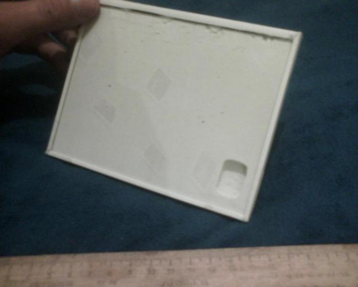 Сделал форм, маленький для маленьких, 14см*11см и ~1,5см шириной. Стекло спереди и сзади, торцы из пластика кабель-канала. На левом торце запланирован выход на арену и отверстие для увлажнения. Вентиляция в виде четырех отверстий заткнутых ватой (под верхней крышкой щель и заднее стекло короче переднего)
