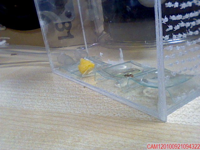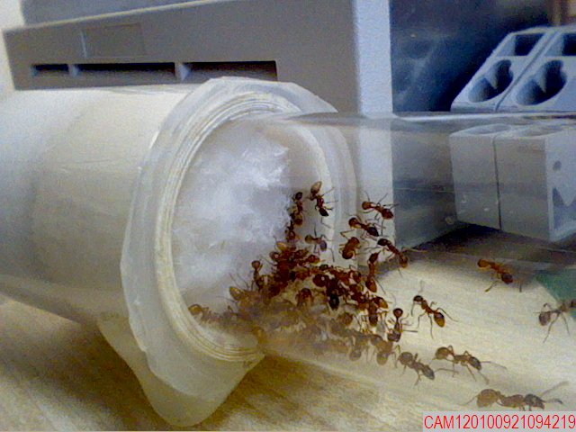 Подобранные на участке при корчевке пеньков мирмики живут и здравствуют! расплод подает признаки жизни, желток яичный едят, сироп пьют, насекомых пока не давал... живут в стеклянной трубке, увлажнитель из ваты с водой, арена подключена 2 трубочками с внутр. диаметром 4 мм...