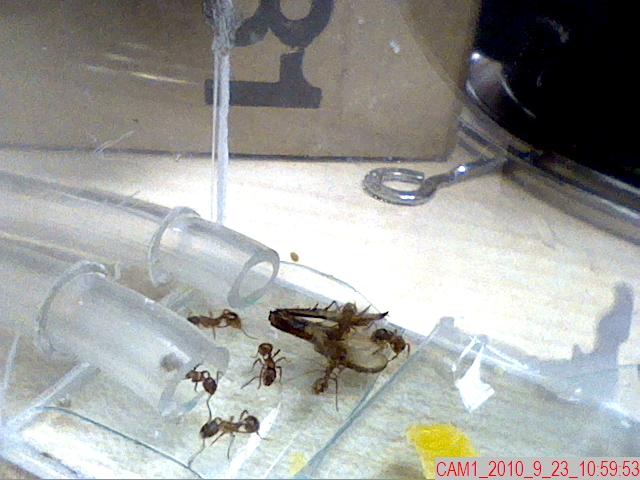 Давно ничего не писал здесь... короче, жизнь идет своим чередом... за зиму особых изменений в колонии не произошло... но на данный момент около 30-35 личинок готовыых к окукливанию, так что ждемс пополнение, питание сироп и мухи, после мух от всего остального отказываются :-), Мух довольно шустро затаскивают в гнездо, на помойку выносят издырявленную тушку потом...