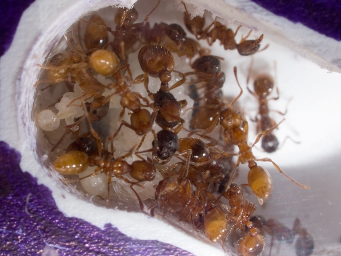 Второй день подряд небывалая активность... по 4-5 мурашей постоянно на арене, сироп выпивают за 2 часа, воду тоже активно пьют... влажность в гнезде нормальная, даже стенки влажные... что бы это могло значить?