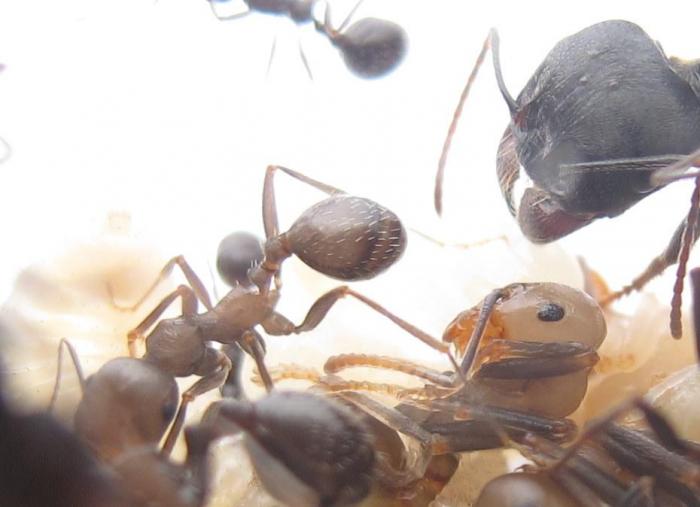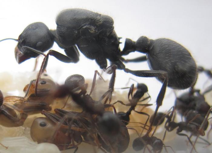 Немного фотографий. Качество не везде хорошее -- еще не научился работать со светом, к тому же спешил. Зато можно увидеть ярко выраженный полиморфизм, самого большого рабочего в семье и мою жалкую попытку макрофото сложного глаза мертвого мессора.