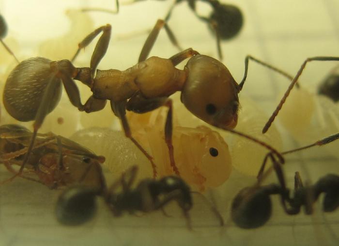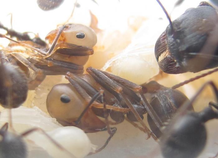 Тут у меня уже полмесяца зрела личинка крупного рабочего -- вчера еще лежала куколкой, а сегодня, вот, ходит;)