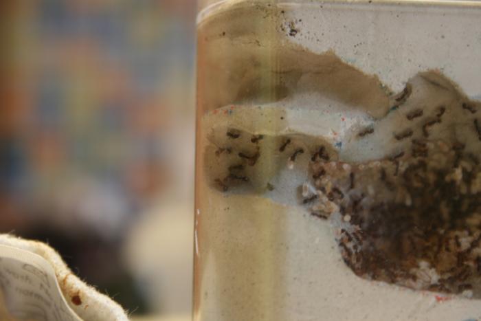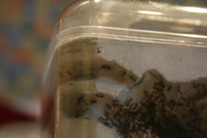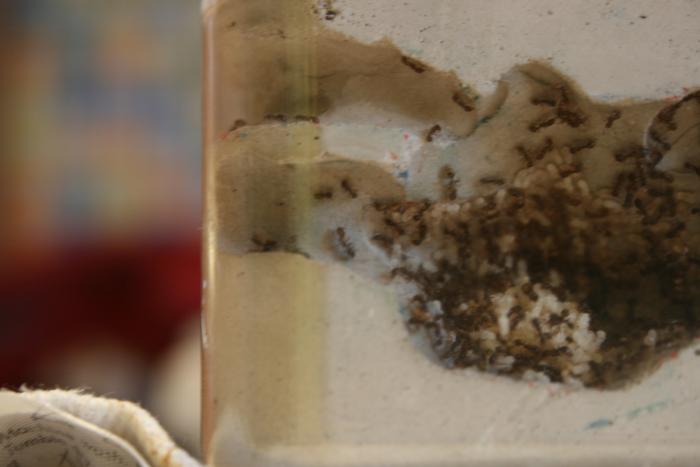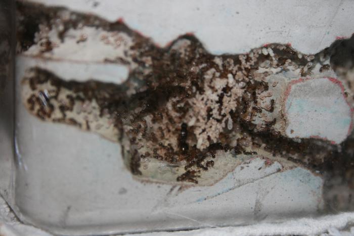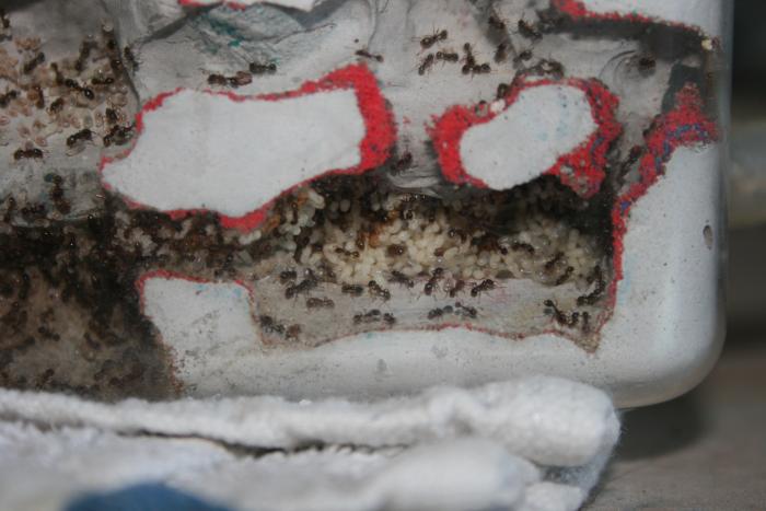 3.Развитие колонии: Развиваются достаточно быстро.Каждый день матка откладывает яйца.Когда они жили в пробирке,все яйца были упакованы во множество маленьких пакетико,когда пересилил их в форм я увидел огромнейший пакет яиц.