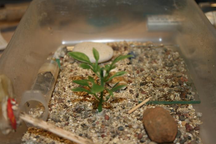Насыпал мелких камушков, убрал весь мусор поставил новую кормушку для сиропа: