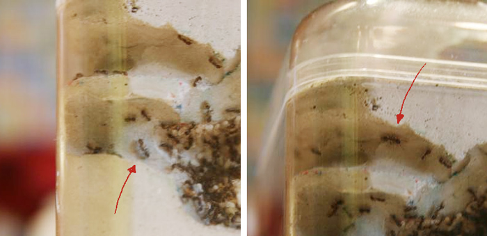 Колония начала заселять вторую камеру.Численность колонии увеличилось примерно в 2 раза.