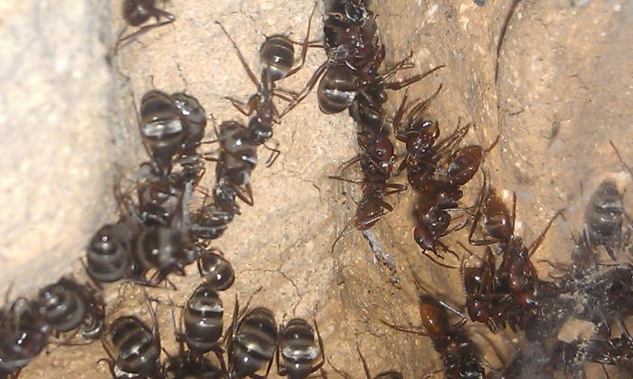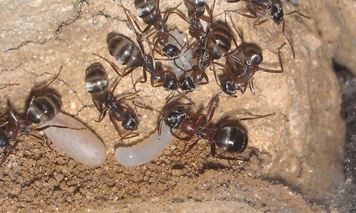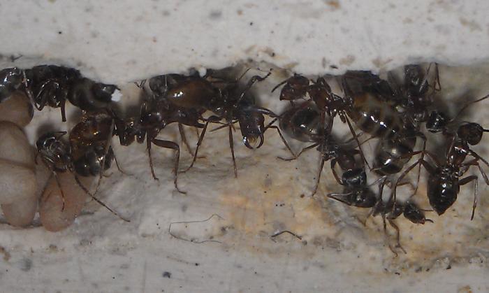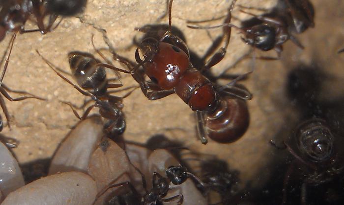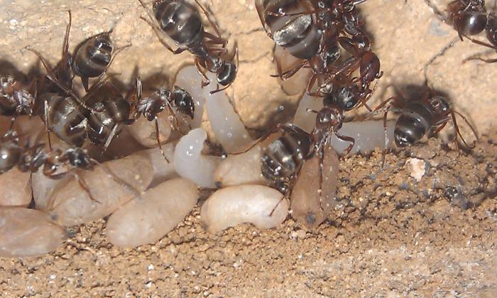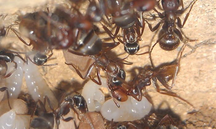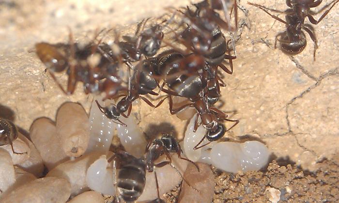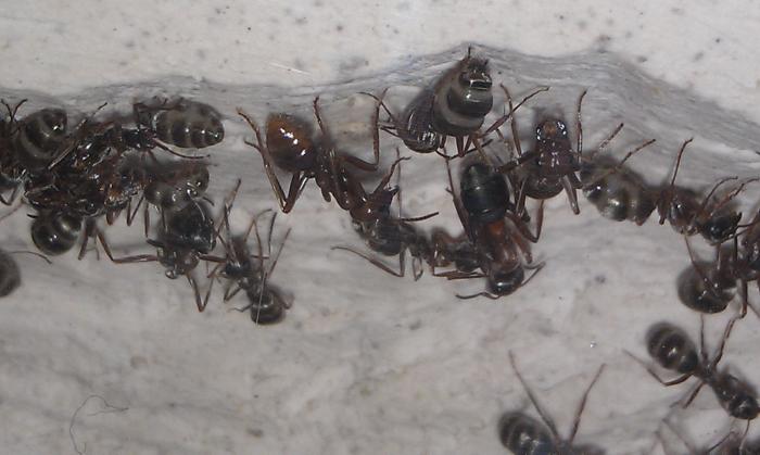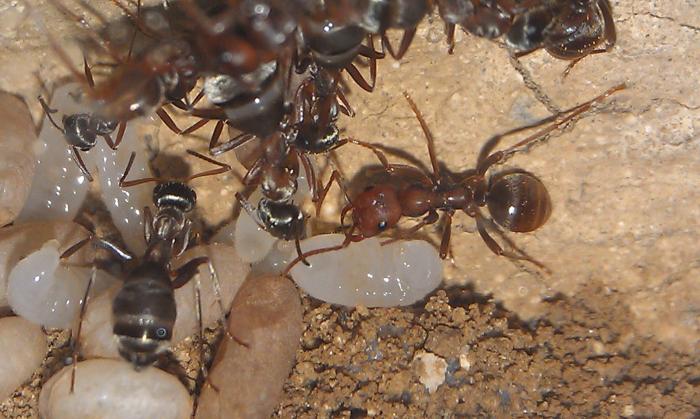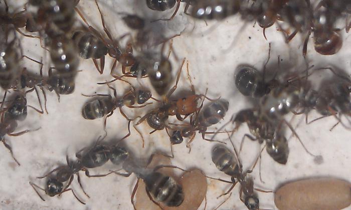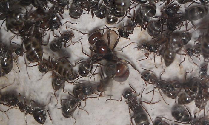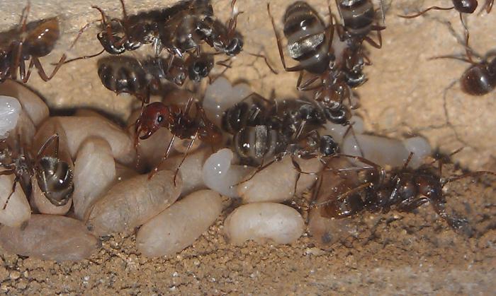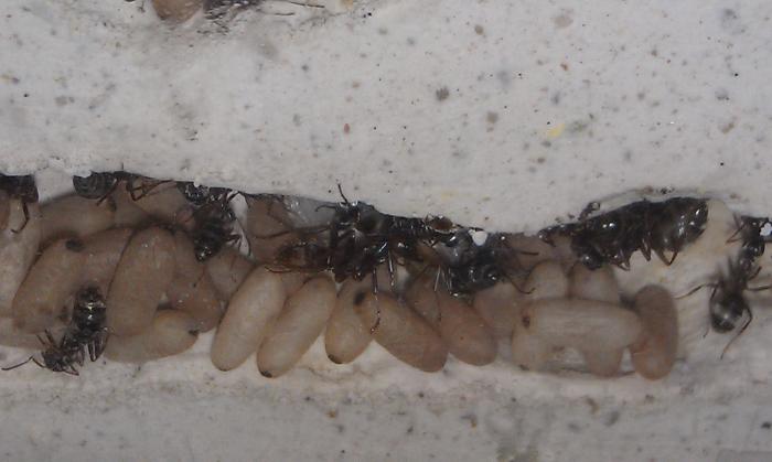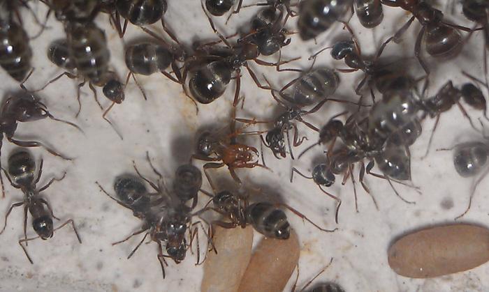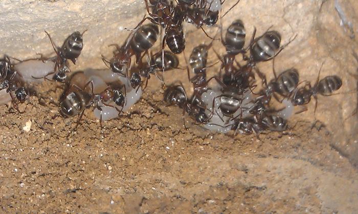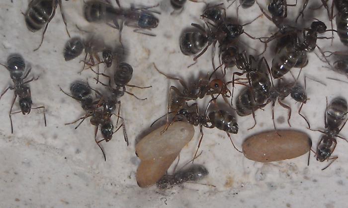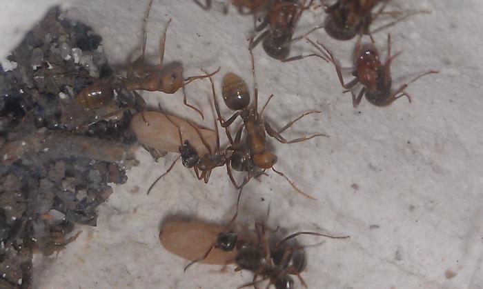 Муравьи(амазонки) ведут себя активно, каждый вечер наблюдаю как порядка 20 муравьев шастает по арене с голодными как лед глазами в поисках куколок . Остальные же как всегда отсиживаются дома .