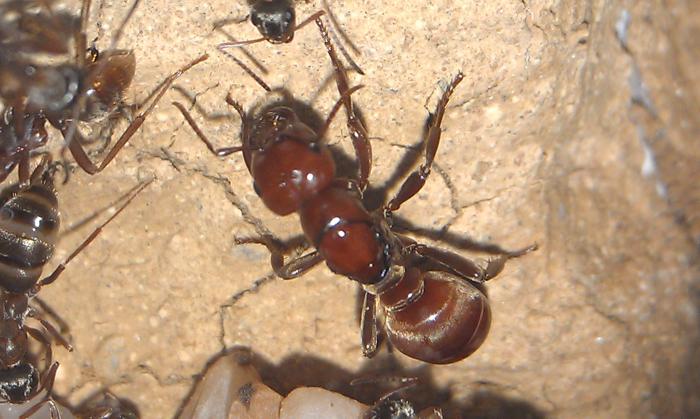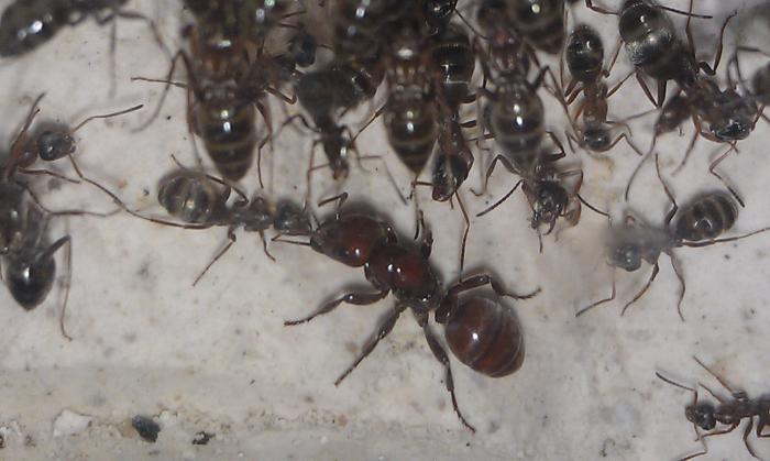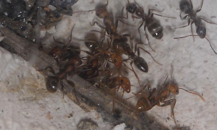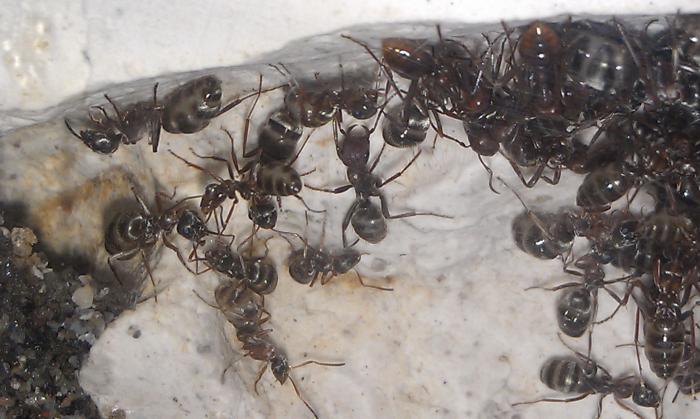 И так держал амазонок при слабом освещении около трех недель. В течении всего этого времени не одна амазонка не покинула своего гнезда, но стоило подключить лампу как амазонки тут же оживились осматривая уже знакомые угодия . Хочу заметить также, что сами рабы вели себя нормально, а вот амазонки (даже молодые особи ) демонстрировали предзимовочное состояние сбиваясь в кучу и тд . Все подтвердилось еще раз ... амазонки в какой-то степени зависят от освещения .