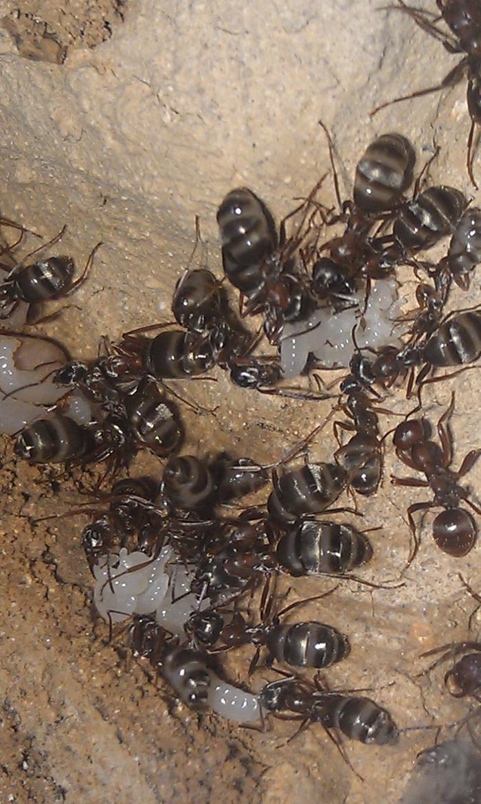 Молодняк весьма активен, всюду снурует по формикарию и будучи не окрепшими пытаются выйти на ружу, дабы узнать что да как . Очень надеюсь что полиергусы станут проявлять активность и чаще появляться на арене .