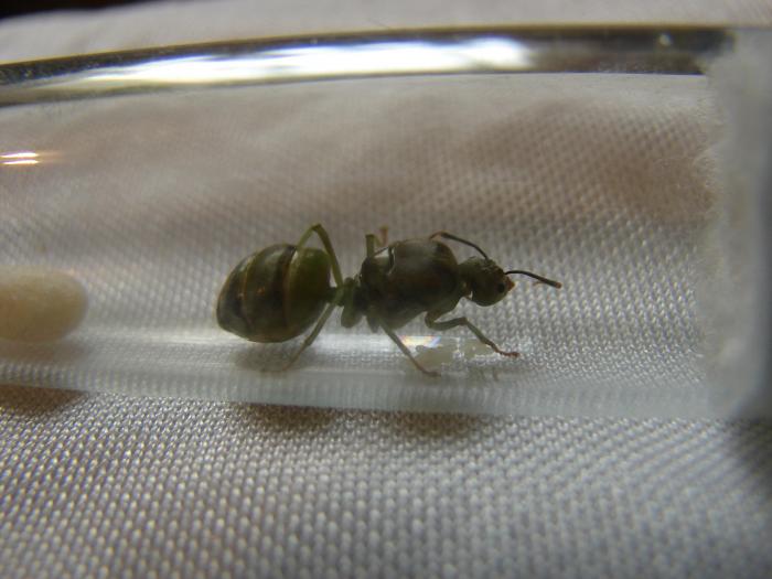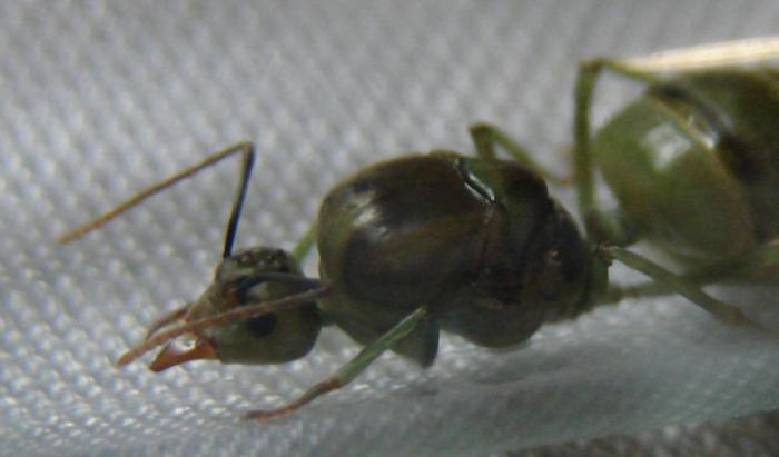 - Еще есть Oecophylla smaragdina. Три безкрылых матки, 7 с крыльями, 2 точно "несушки". А еще есть какая-то формика размером 1см (оплодотворена, уже с муравьями), и что-то похожее на Diacamma, но с приплюснутой мордочкой как у "пробкоголового", размер матки где-то 1.5см, одна сбросила крылья, но без яиц пока.