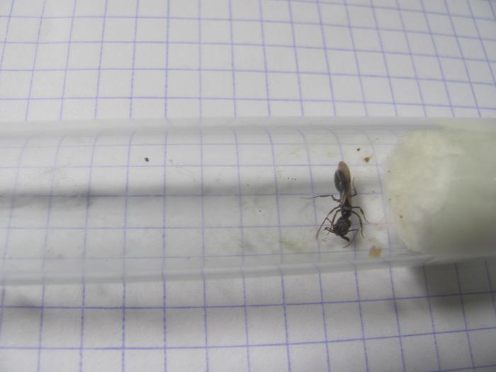 10. Даж не знаю кто. Размер маток где-то 0.8. Выловил эти экземпляры в бассейне. После 10 минут оклемались, кто по сбрасывали крылья, кто просто начал вести себя активнее. В начале было 8 королев, но из-за недостатка жил площади осталось 4. Сидят сейчас в одной пробирке, смотрят за приплодом. Боюсь что сей вид моногин, и при появлении первых рабочих останется одна матка. Но надеюсь этого не случится, и я их в скором времени по рассаживаю когда обзаведусь пробирками.