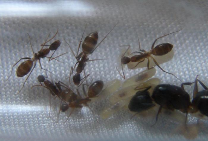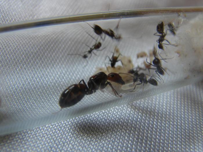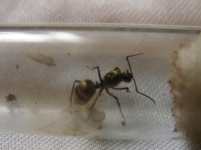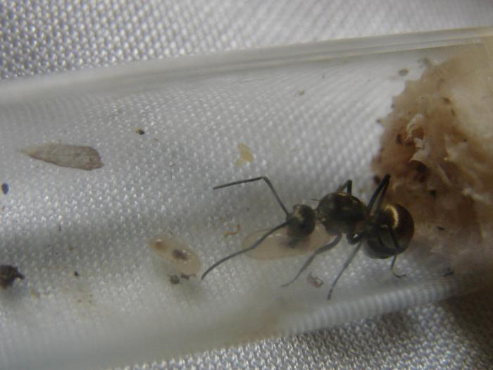 И еще один однокрылый эмигрант с Малайзии Camponotus sp. все-таки отложил яйца, надеюсь на этот раз она их есть не будет. Но от моли отказывается, уносит в дальний угол пробирки.
